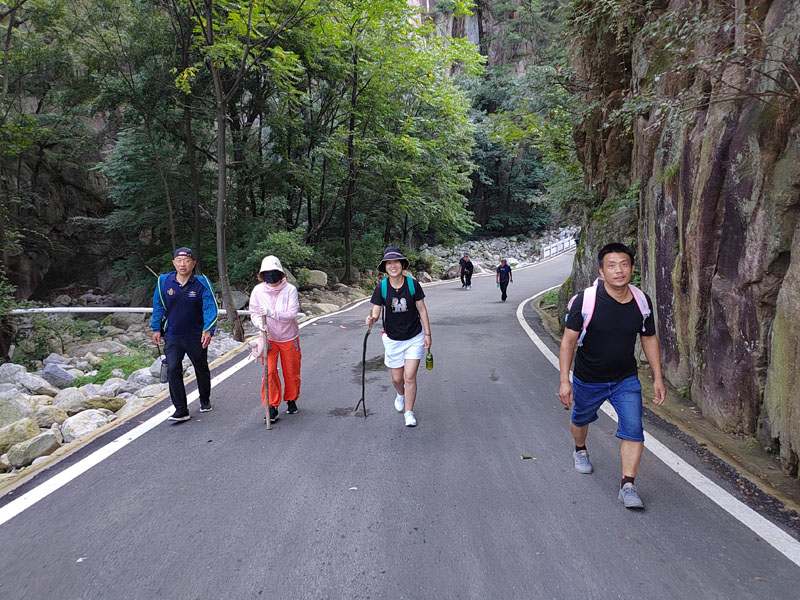 此時(shí)爬堯山特別適宜,晴空萬里,同時(shí)由于昨天剛下過雨,空氣也非常濕潤,溫度也非常涼爽。公司里有的人乘坐索道上至中途,然后爬上頂峰,有的人直接徒步爬至頂峰。
